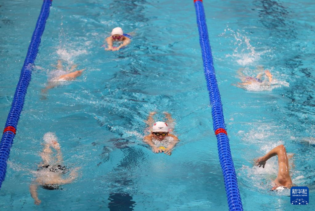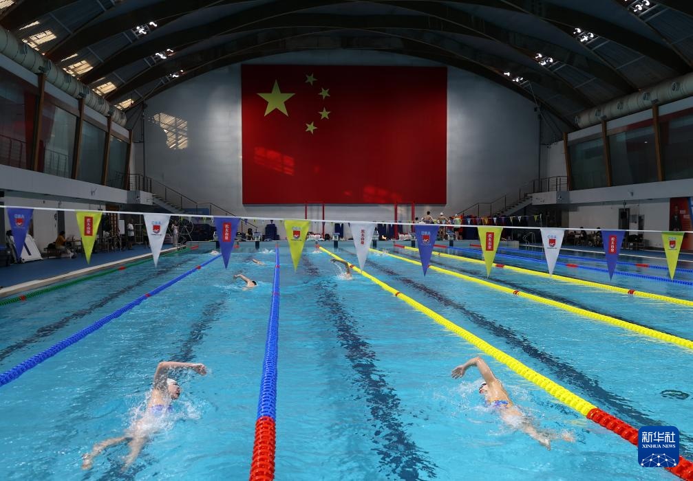 當日,中國游泳隊在北京國家體育總局開展日常訓練。