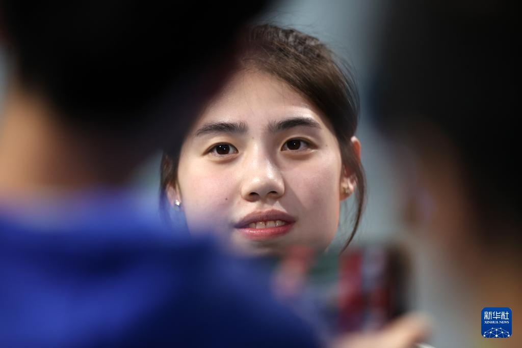 1月25日,中國游泳隊隊員余依婷在訓練后接受采訪。新華社記者 雒圓 攝