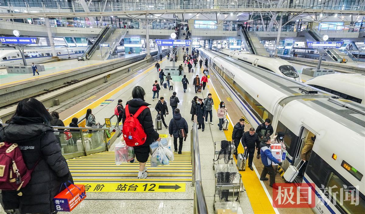 武鐵根據鐵路12306客票預售及候補數據,以北京、上海、廣深方向及管內漢十、漢宜等動車組列車開行為重點,計劃節前安排始發客車406.5對、節后安排始發客車430對,較2019年春運分別增長12.3%、13.5%。春運期間,武鐵預計日均發送旅客62.8萬人次,共發送旅客2510萬人次,將創歷史新高。