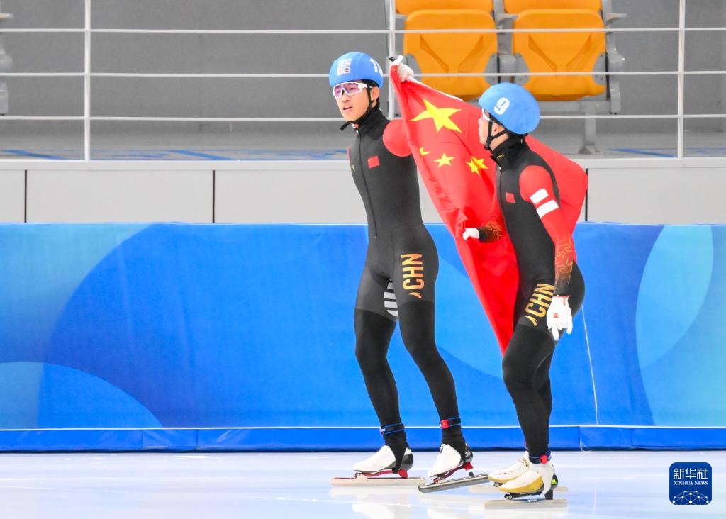 1月26日,潘寶碩(左)、張萬里在比賽后慶祝。新華社記者 朱煒 攝