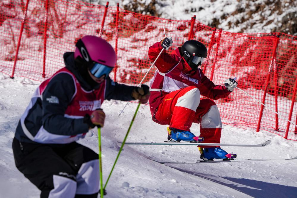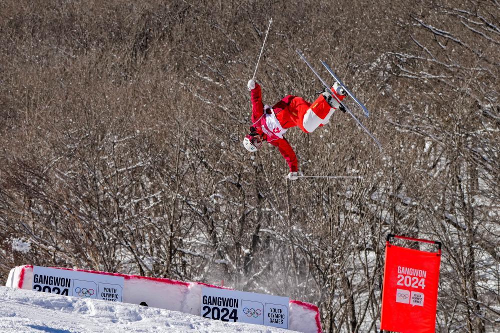 冬青奧會歷史上首場自由式滑雪雪上技巧比賽當日在旌善賽區(qū)舉行。在雙人雪上技巧混合團體比賽中,中國選手黎睿霖和龍昊組隊參賽,他們在八分之一決賽中以兩分之差不敵韓國組合,無緣晉級。美國隊獲得冠軍。