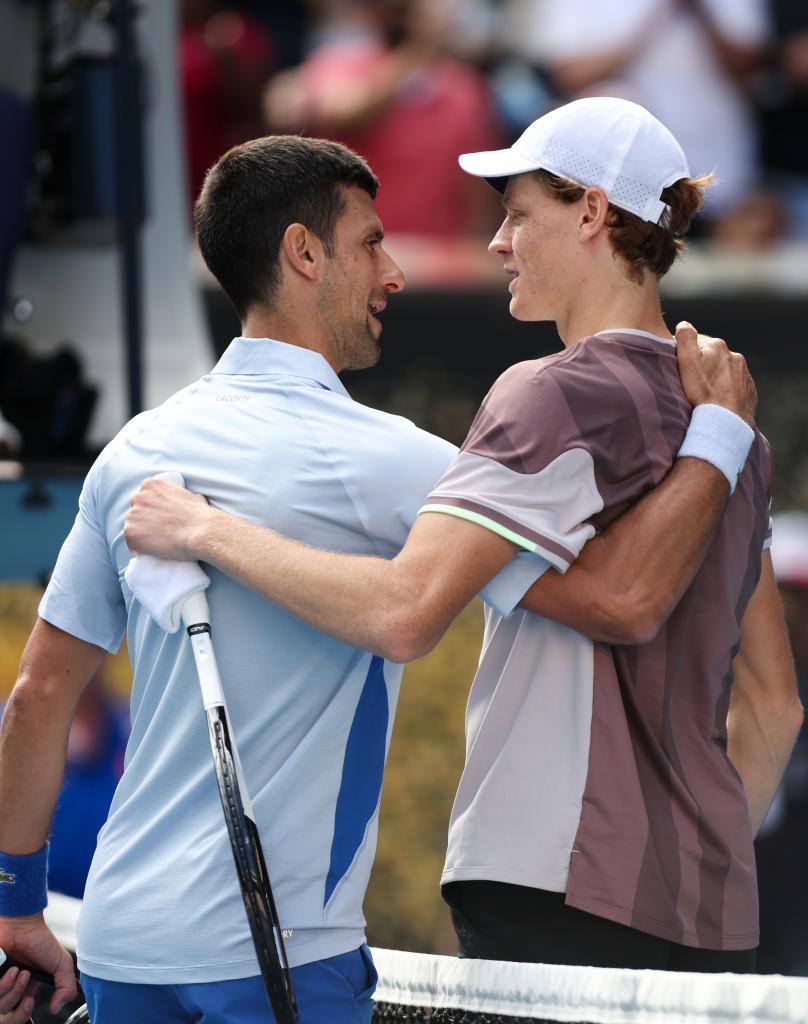 1月26日,焦科維奇(左)與辛納在賽后相互致意。新華社記者 馬平 攝
