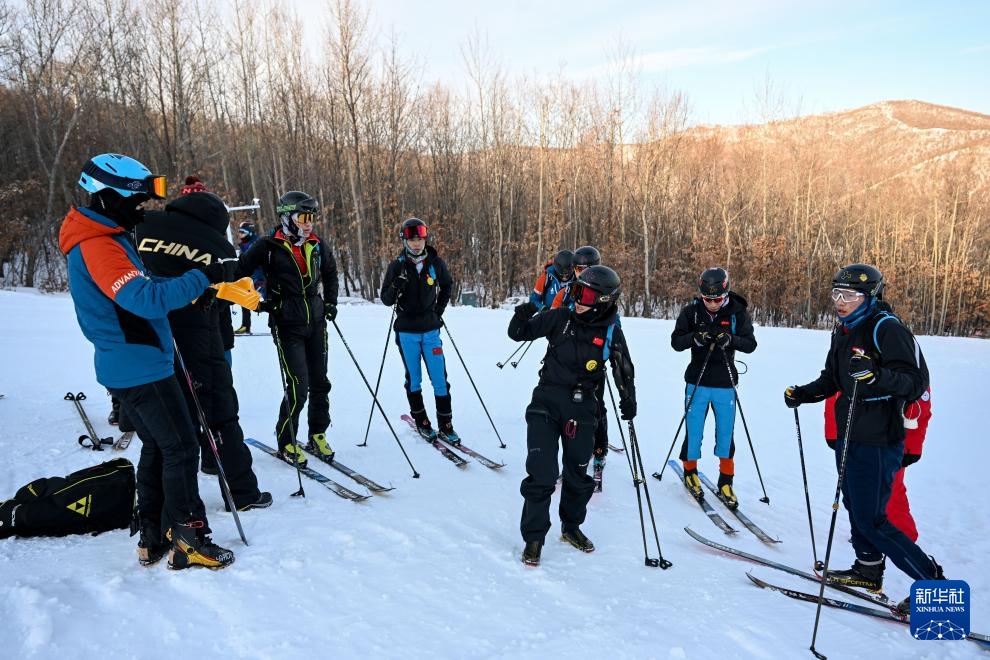 1月28日,在內(nèi)蒙古呼倫貝爾市扎蘭屯市金龍山滑雪場,教練員(右三)指導(dǎo)運動員訓(xùn)練。新華社記者 貝赫 攝