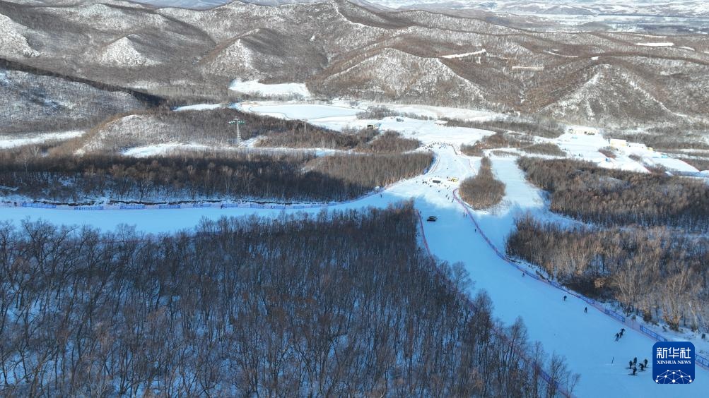 這是1月28日在內(nèi)蒙古呼倫貝爾市扎蘭屯市金龍山滑雪場拍攝的滑雪登山比賽場地(無人機照片)。新華社記者 貝赫 攝