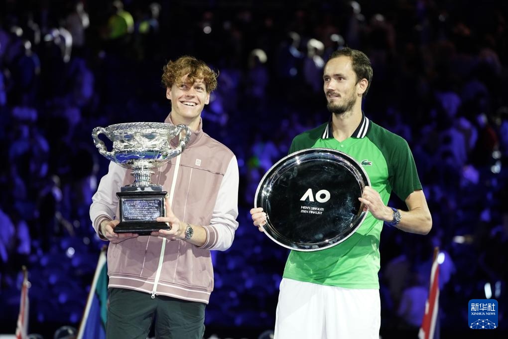 當(dāng)日,在墨爾本進(jìn)行的2024年澳大利亞網(wǎng)球公開賽男單決賽中,意大利選手辛納3比2戰(zhàn)勝俄羅斯選手梅德韋杰夫,獲得冠軍。