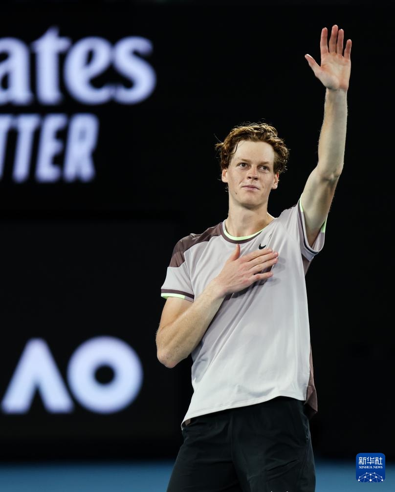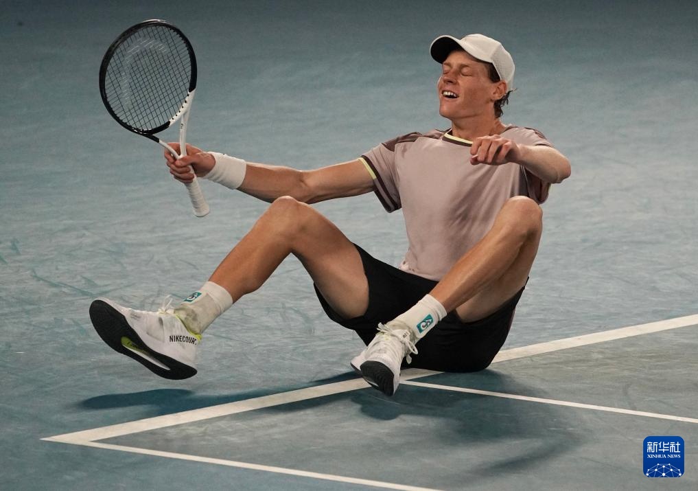1月28日,辛納獲勝后慶祝。新華社記者 王申攝