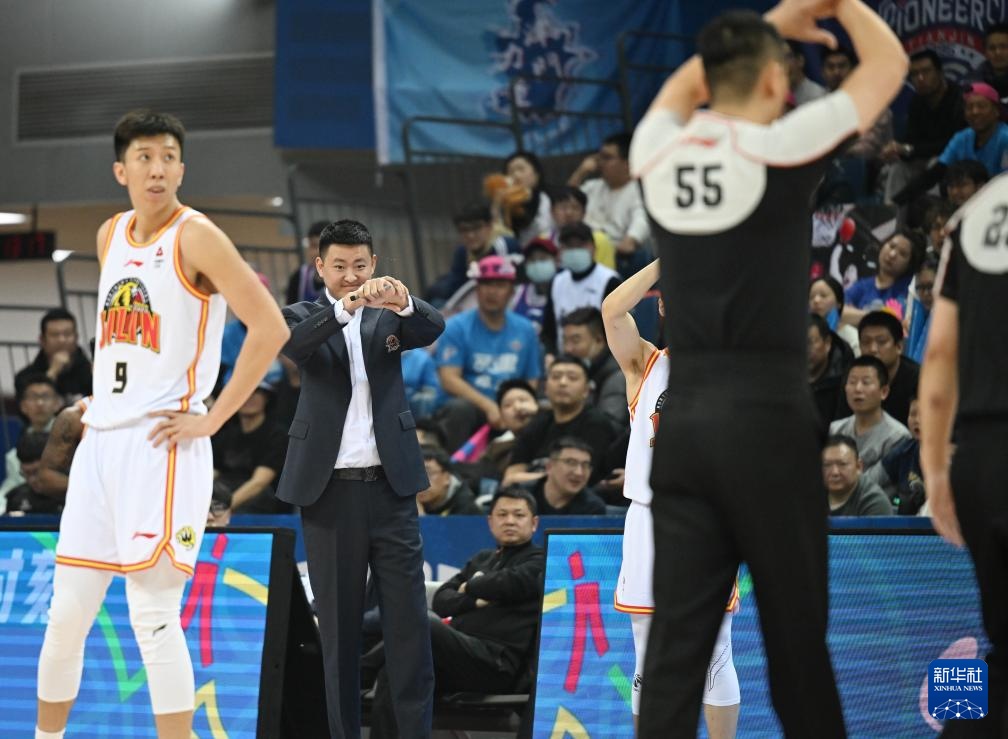 1月28日,吉林九臺農商銀行隊主教練高俊超(左二)在場邊指揮。新華社記者 趙子碩 攝