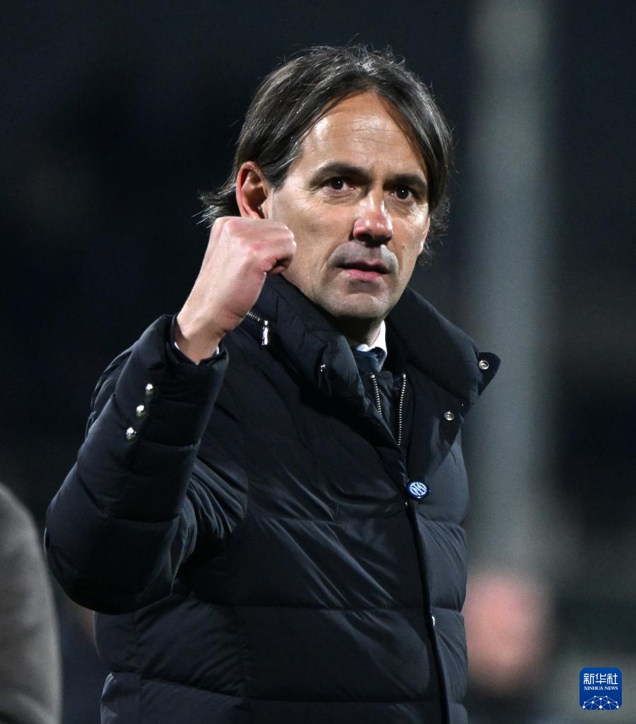 1月28日,國際米蘭隊主教練因扎吉在賽后慶祝。新華社發(阿爾貝托·林格利亞攝)