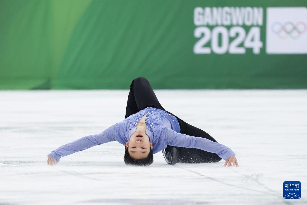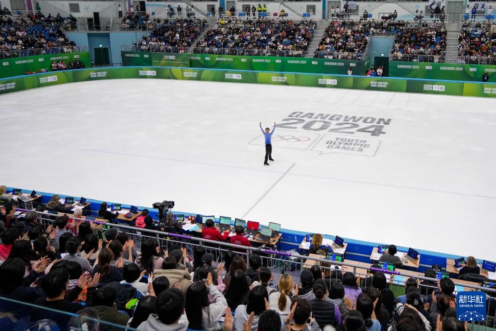 當日,2024年江原道冬青奧會花樣滑冰男子單人滑自由滑比賽在韓國江陵舉行。