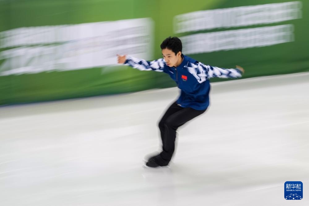 1月29日,中國選手田桐赫在自由滑比賽前熱身。最終,他以179.32分的總成績獲得男子單人滑比賽第八名。新華社記者 張笑宇 攝