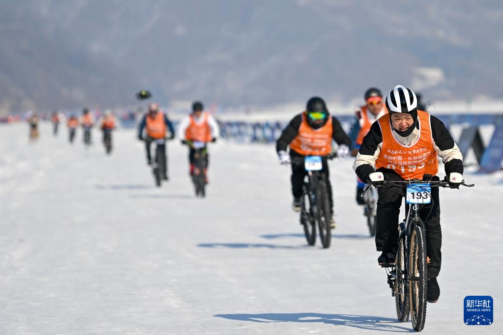 1月30日,參賽者在雪地自行車馬拉松挑戰賽中。新華社記者 顏麟蘊 攝