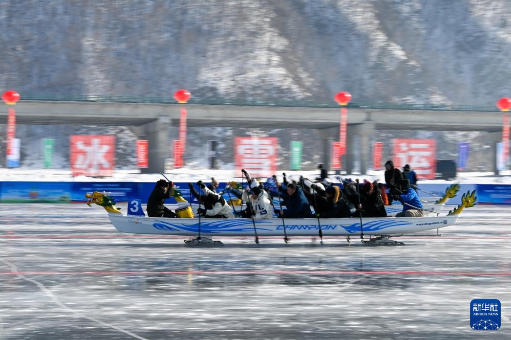 1月30日,參賽者在冰上龍舟超級聯賽中。新華社記者 顏麟蘊 攝