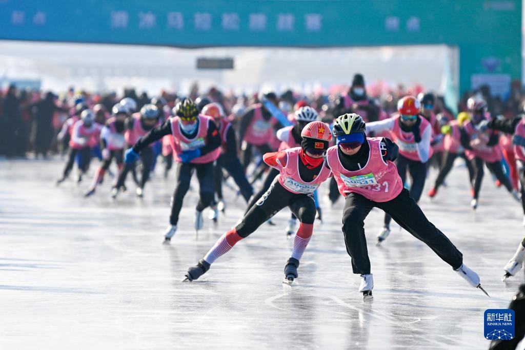 1月30日,參賽者在滑冰馬拉松挑戰賽中從起點出發。新華社記者 顏麟蘊 攝