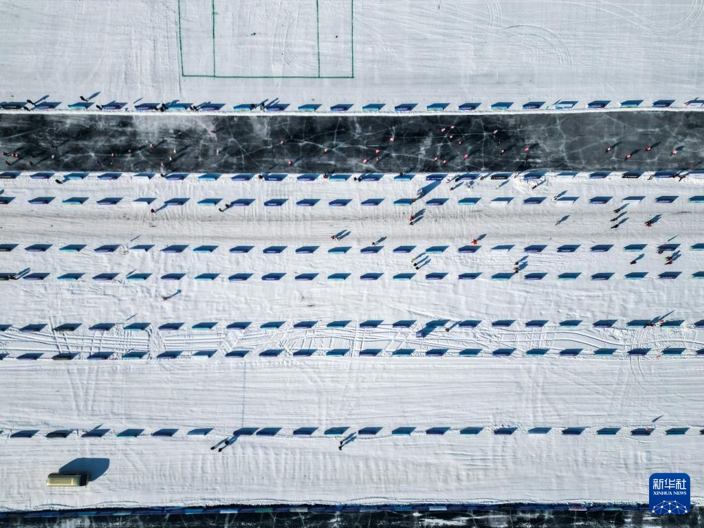 1月30日,參賽者在滑冰馬拉松挑戰賽中(無人機照片)。新華社記者 顏麟蘊 攝