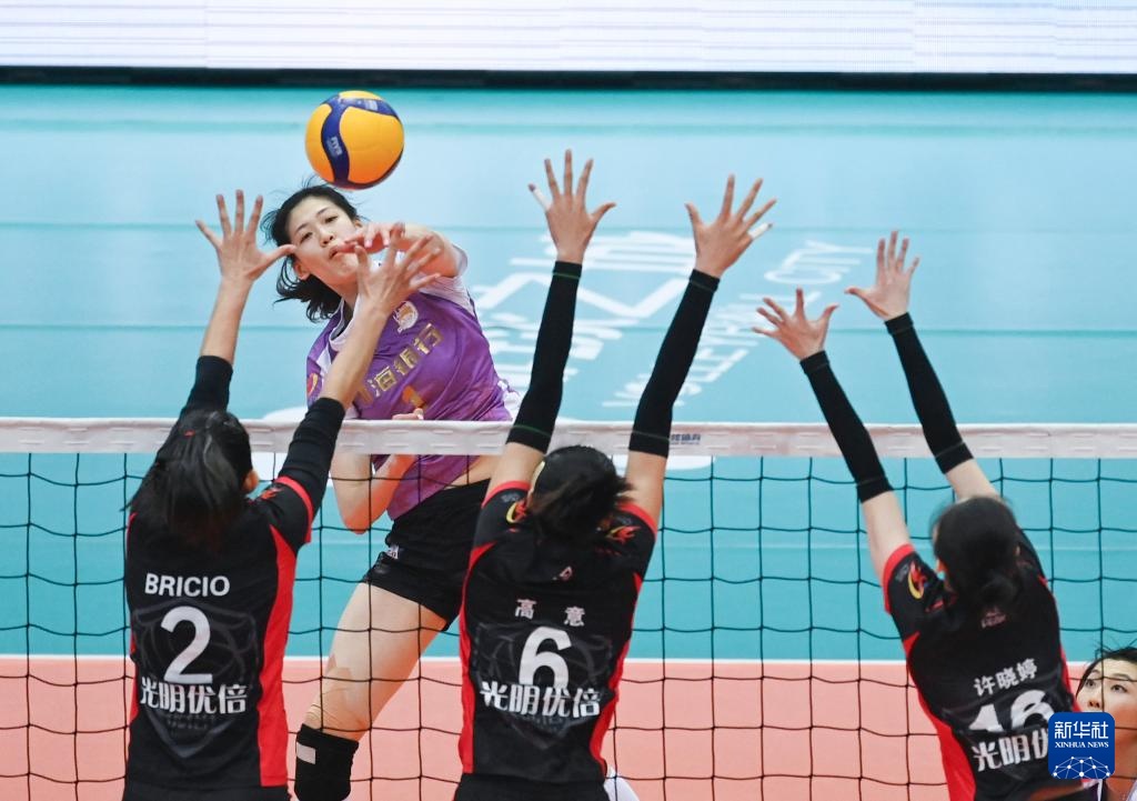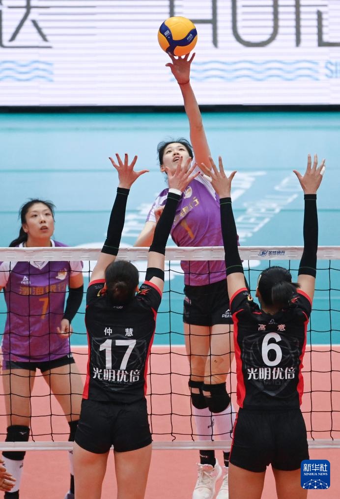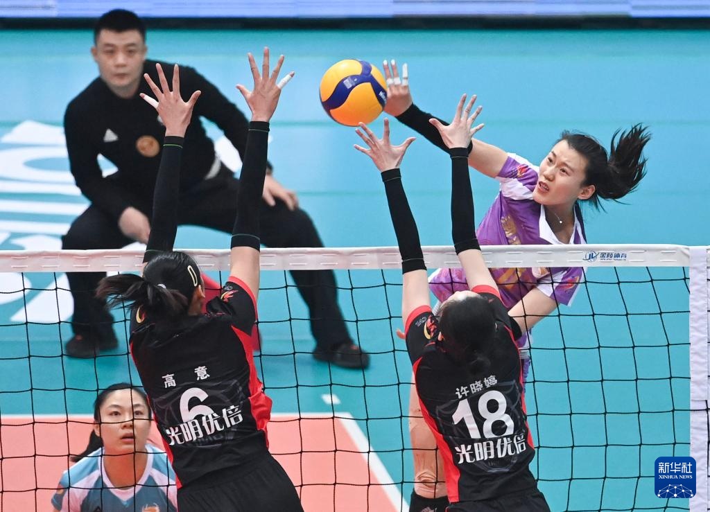 當日,在天津舉行的2023-2024賽季中國女排超級聯賽決賽第三場比賽中,天津渤海銀行隊3比0戰勝上海光明優倍隊,從而在五場三勝制的決賽中以總比分2比1取得領先。