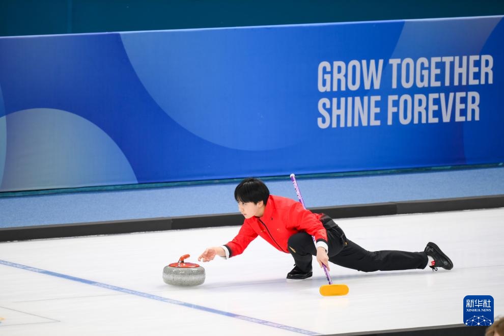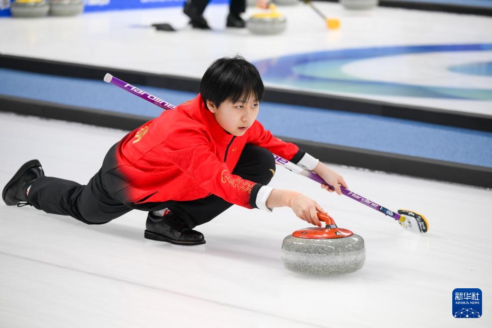1月31日,中國選手龔長玉婷在比賽中擲冰壺。新華社記者 朱煒 攝