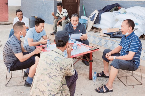 圖為2021年8月3日,鮑衛忠(右二)在云南省滄源佤族自治縣勐省鎮處理案件。 最高人民法院新聞局供圖