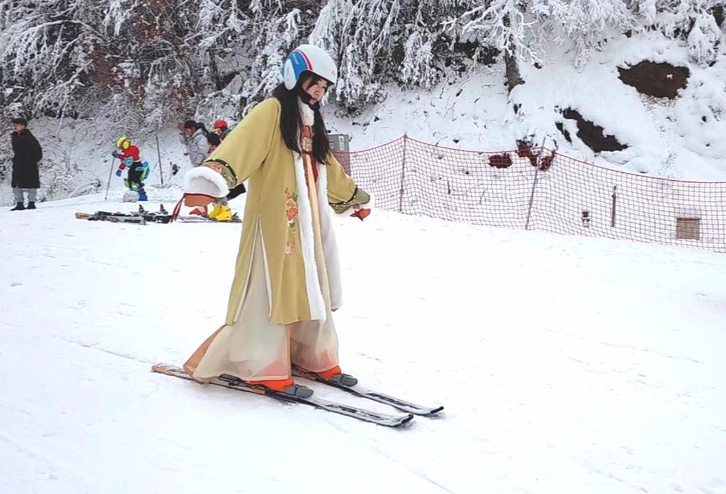 Cosplay滑雪,正在這里流行起來。近日,在石柱土家族自治縣冷水鎮國際滑雪場,記者看到一些身著漢服的青年女子從雪道上翩然而下,衣袂飄飄,服飾的鮮艷與雪地的潔白相映成趣。其中一位姑娘叫馬佳,她說:“平時喜歡穿漢服,這次約了不少喜歡穿漢服的小伙伴一起來,就是想體驗一下古裝滑雪的奇妙感覺。”