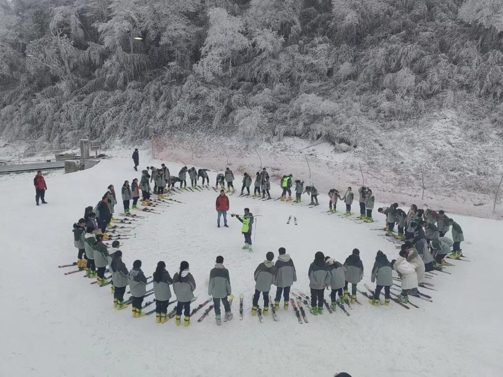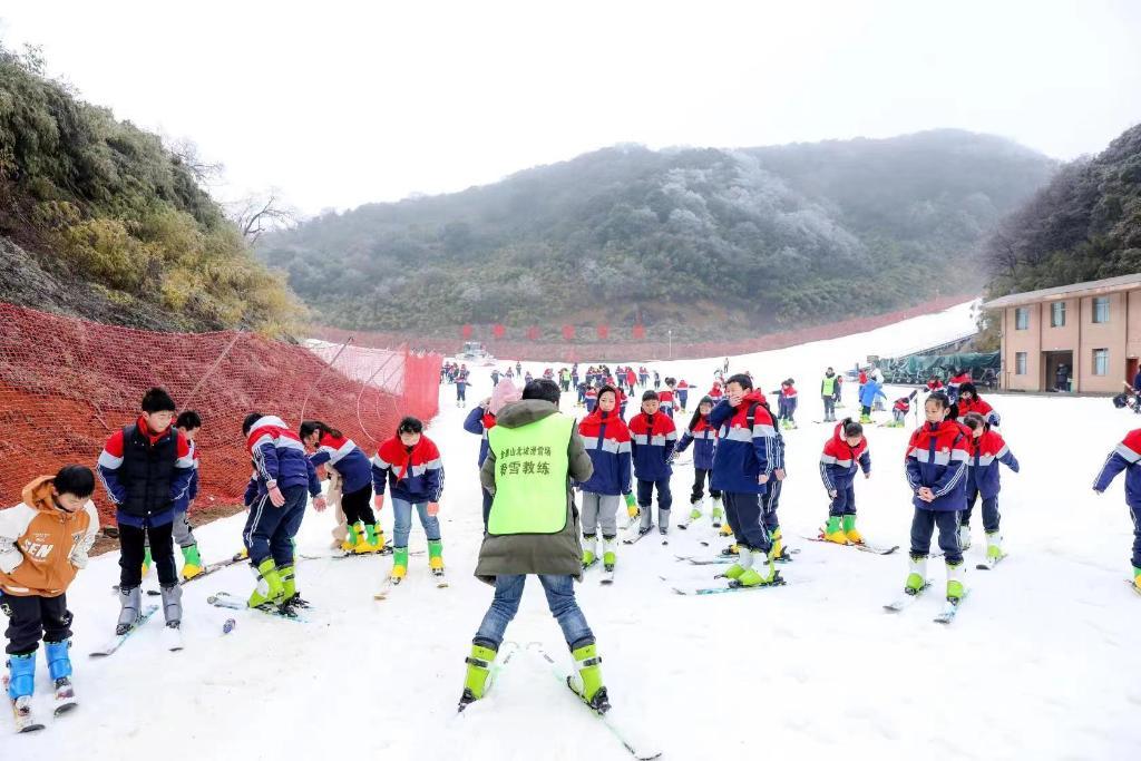 南川金佛山滑雪場開展的滑雪研學活動吸引了眾多中小學生參與。受訪者供圖