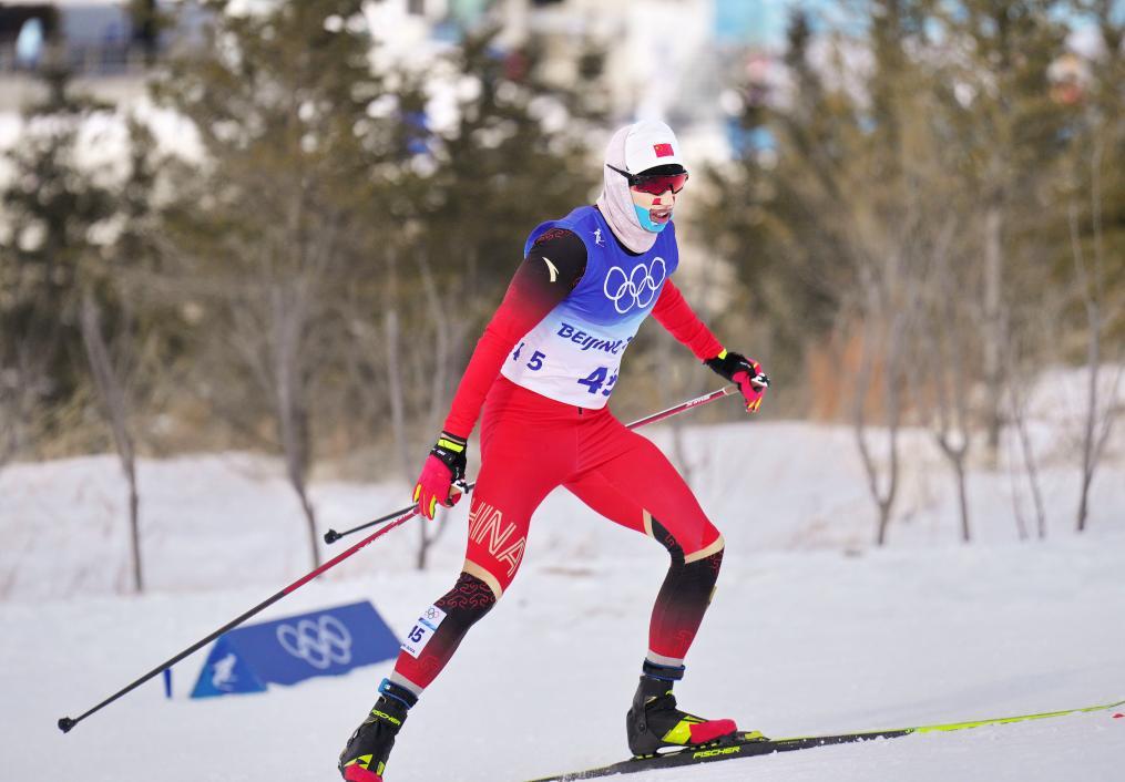 2022年2月19日,中國選手王強在北京冬奧會比賽中。新華社記者 牟宇 攝