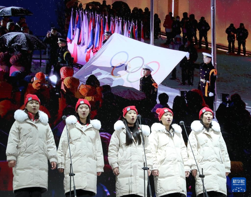 2月1日,演員在國際奧委會會旗降旗儀式上合唱。新華社記者 姚琪琳 攝