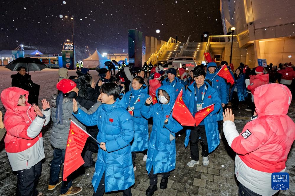 2月1日,中國代表團在閉幕式前入場。新華社記者 張笑宇 攝