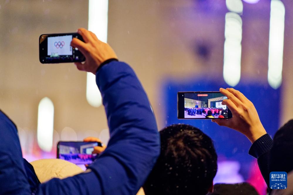 2月1日,觀眾用手機拍攝閉幕式。新華社記者 張笑宇 攝