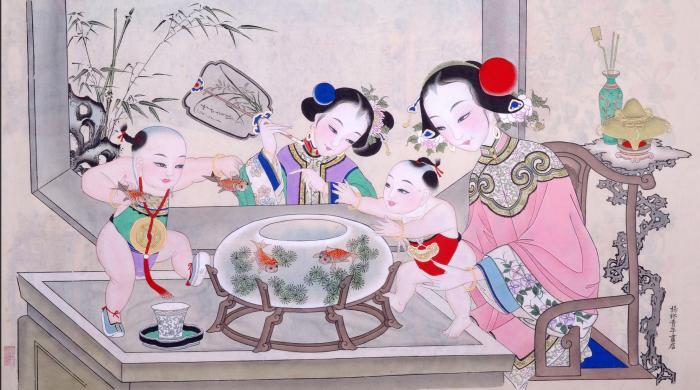 年畫以“年”為名,大多于春節(jié)時張貼,烘托喜慶祥和的春節(jié)氛圍,寄托喜瑞安康的新春愿望。從內容上看題材極其豐富,天文地理、歷史典故、神話傳說、世俗生活等,包羅萬象,無所不有。從產地上看素有“南桃北柳”之說,南指蘇州桃花塢年畫,北指天津楊柳青年畫,二者皆為中國年畫的主流。