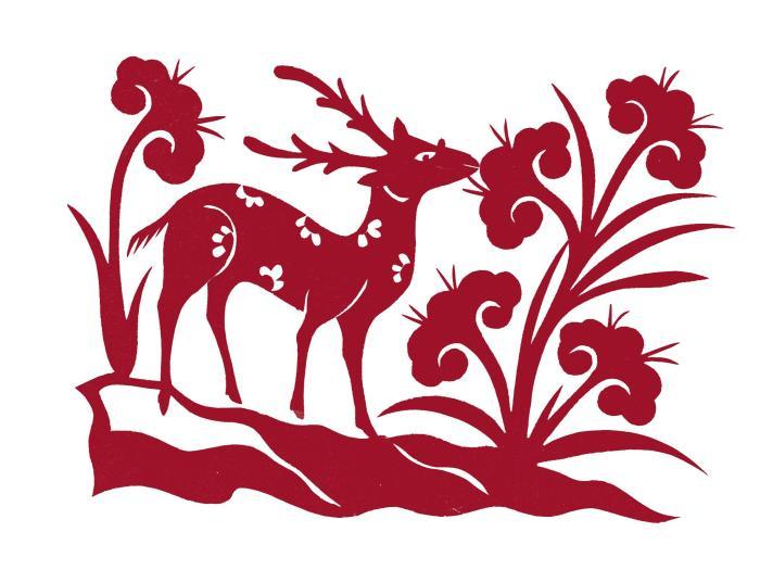 沈陽故宮圍繞“?!薄暗摗薄皦邸薄跋病薄柏敗边@一主題展出29幅剪紙圖片。圖為剪紙圖片“靈芝瑞鹿”。(沈陽故宮博物院 供圖)
