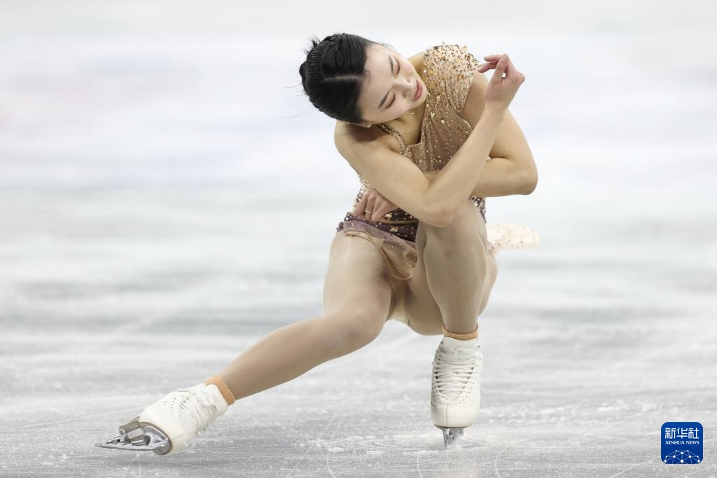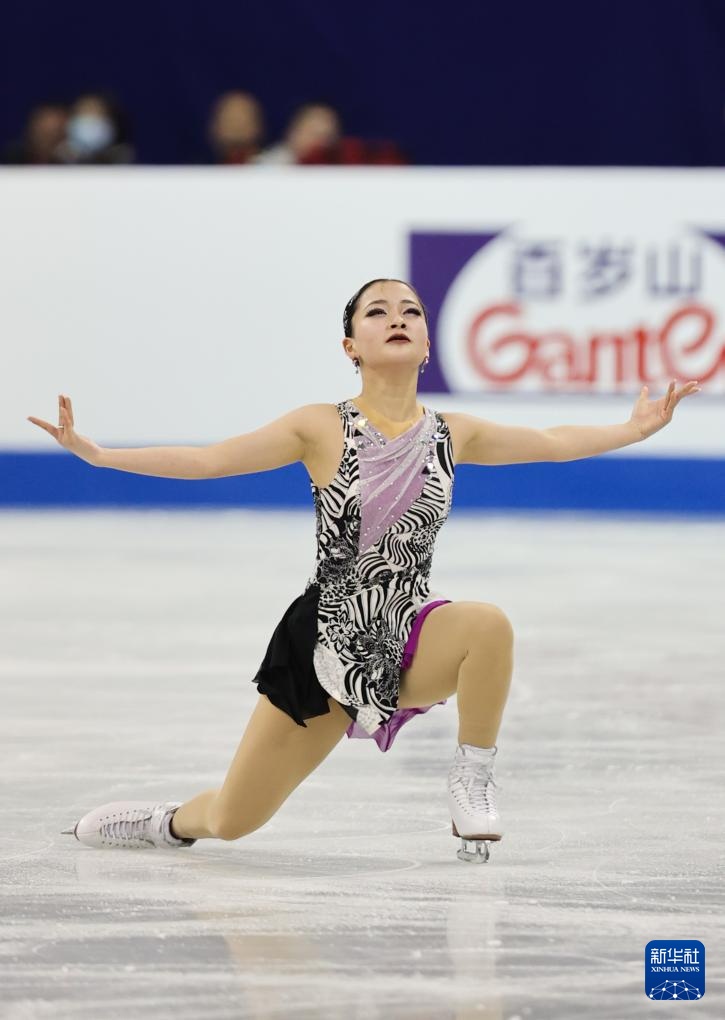 2月2日,日本選手千葉百音在自由滑比賽中。她以214.98分的總成績獲得女子單人滑冠軍。新華社記者 王翔 攝