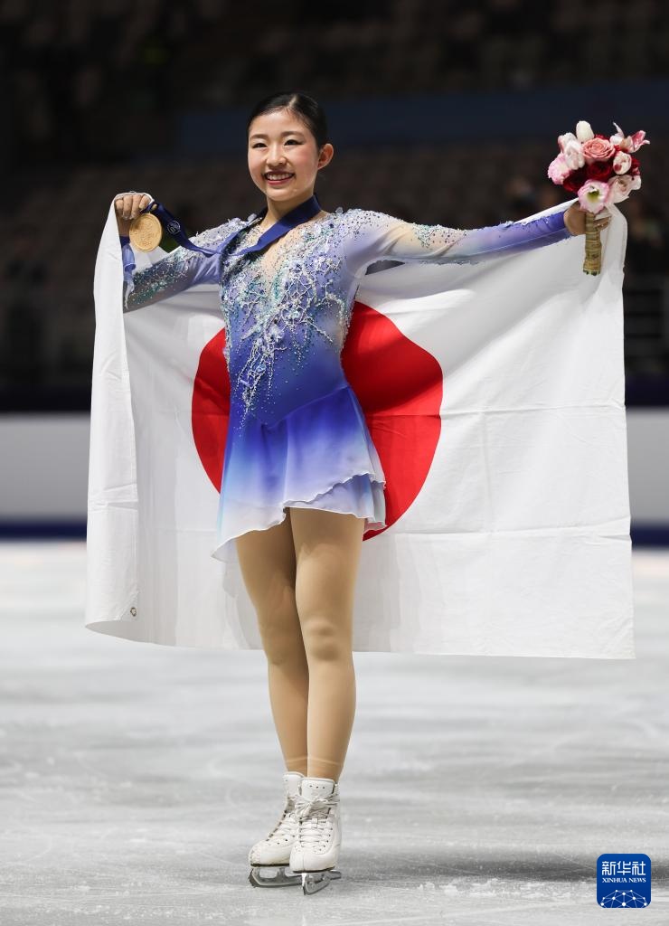 2月2日,日本選手千葉百音在女子單人滑頒獎儀式后。她以214.98分的總成績獲得冠軍。新華社記者 王翔 攝