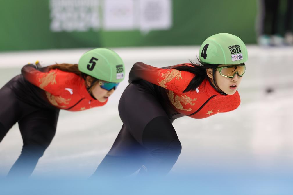 1月20日,中國選手楊婧茹與李金恣(右)在比賽中。新華社記者 許雅楠 攝