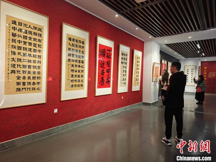 圖為市民、游客參觀“福語吉言——陳吉書法藝術作品展”。中新網記者 葉秋云 攝