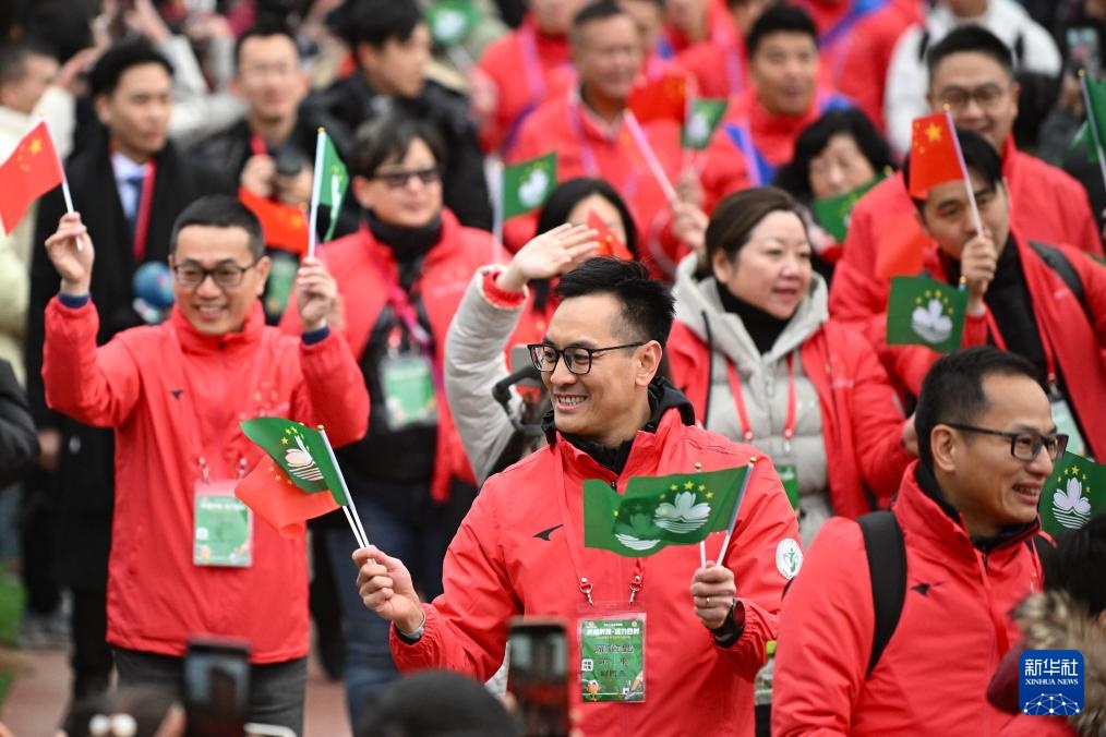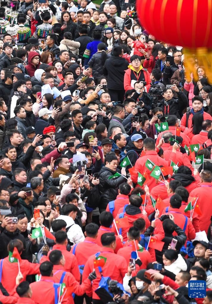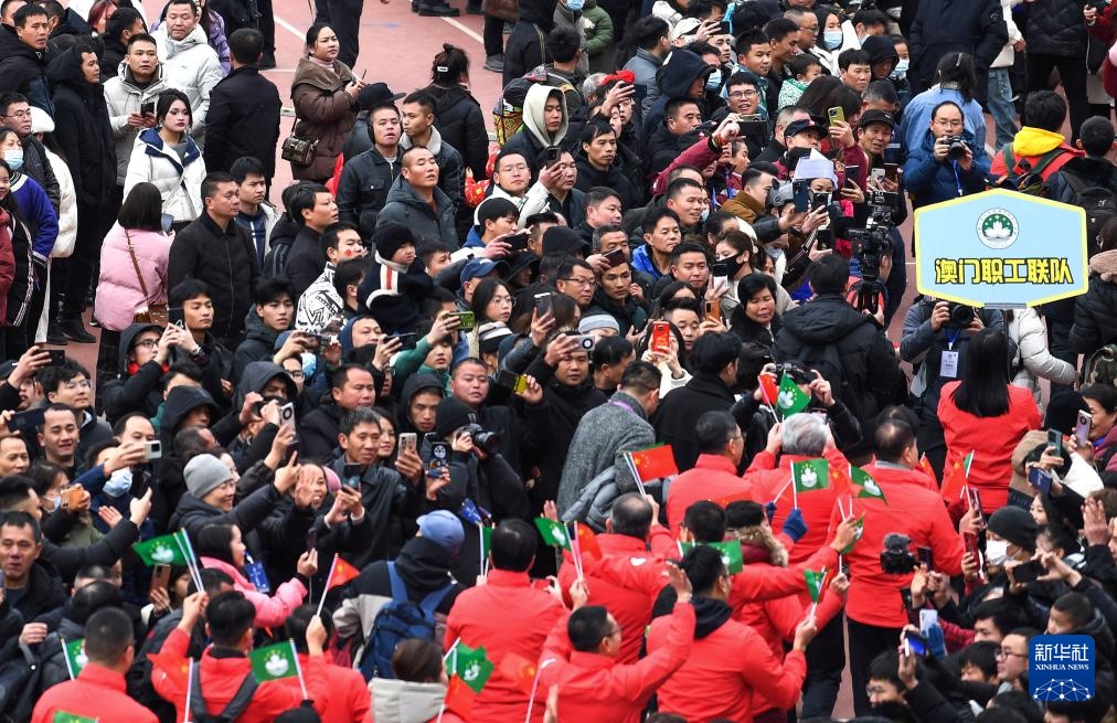 2月3日,觀眾夾道歡迎前來參賽的澳門職工聯(lián)隊(duì)。新華社記者 楊文斌 攝