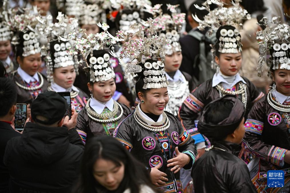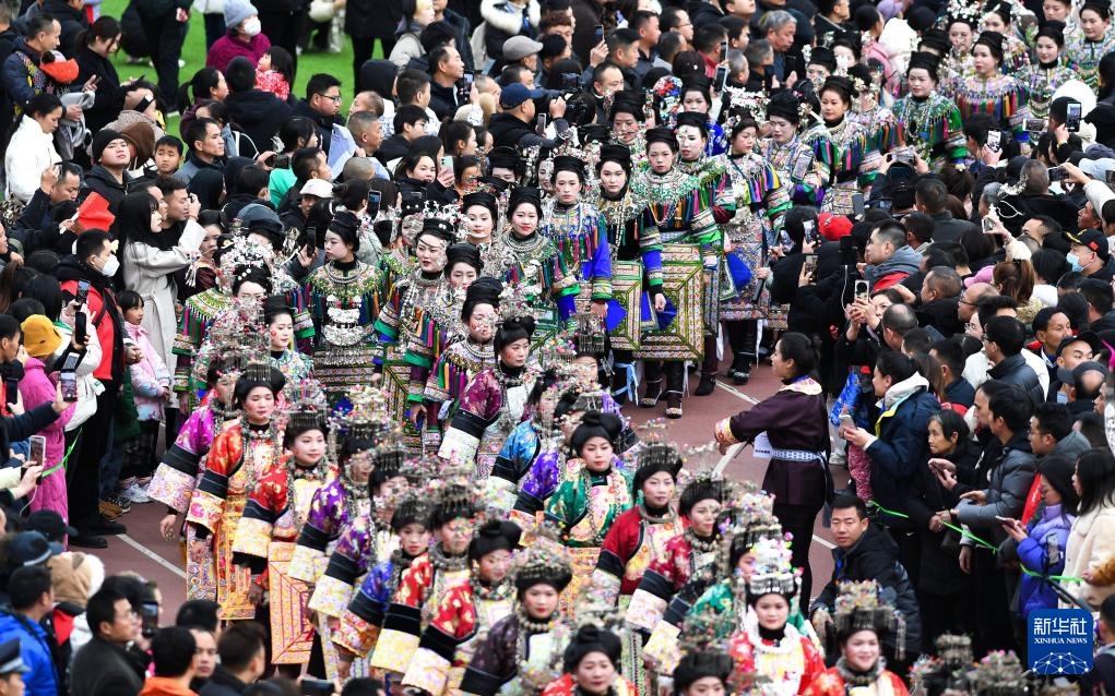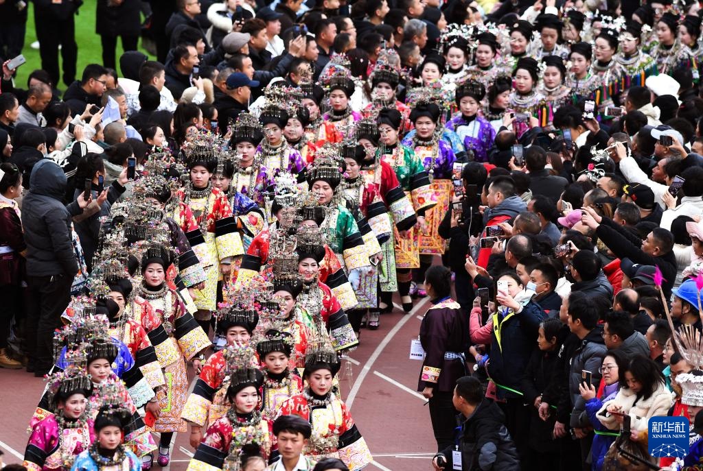 2月3日,村民組成的表演隊(duì)身著民族服裝進(jìn)入活動現(xiàn)場。新華社記者 楊文斌 攝