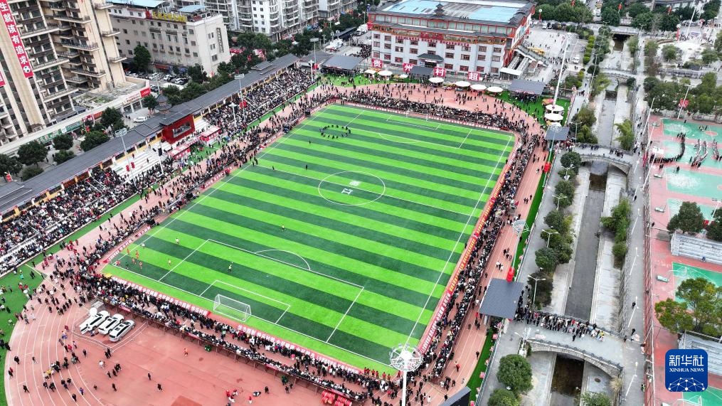 2月3日,觀眾在“村超”賽場等待活動開始(無人機(jī)照片)。新華社記者 劉續(xù) 攝