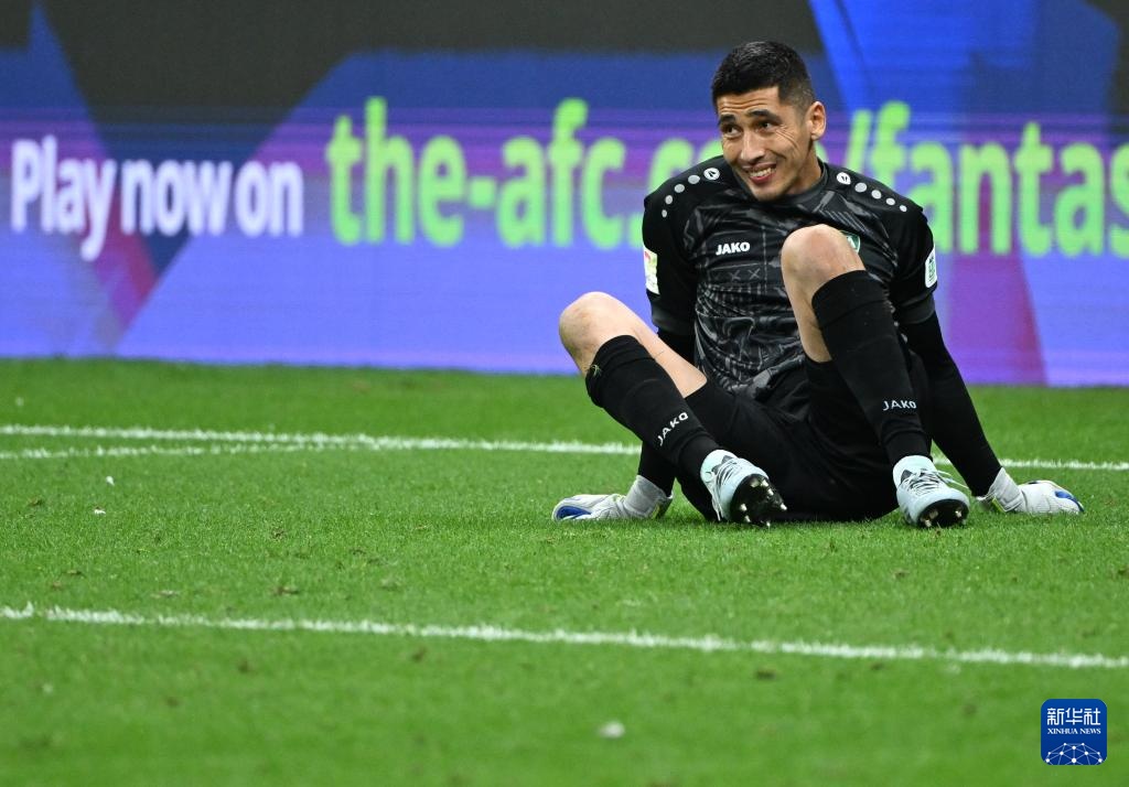 2月3日,烏茲別克斯坦隊(duì)守門(mén)員烏特基爾·尤蘇波夫未能撲出卡塔爾隊(duì)球員佩德羅·科雷亞的制勝點(diǎn)球之后。新華社記者 孫凡越 攝
