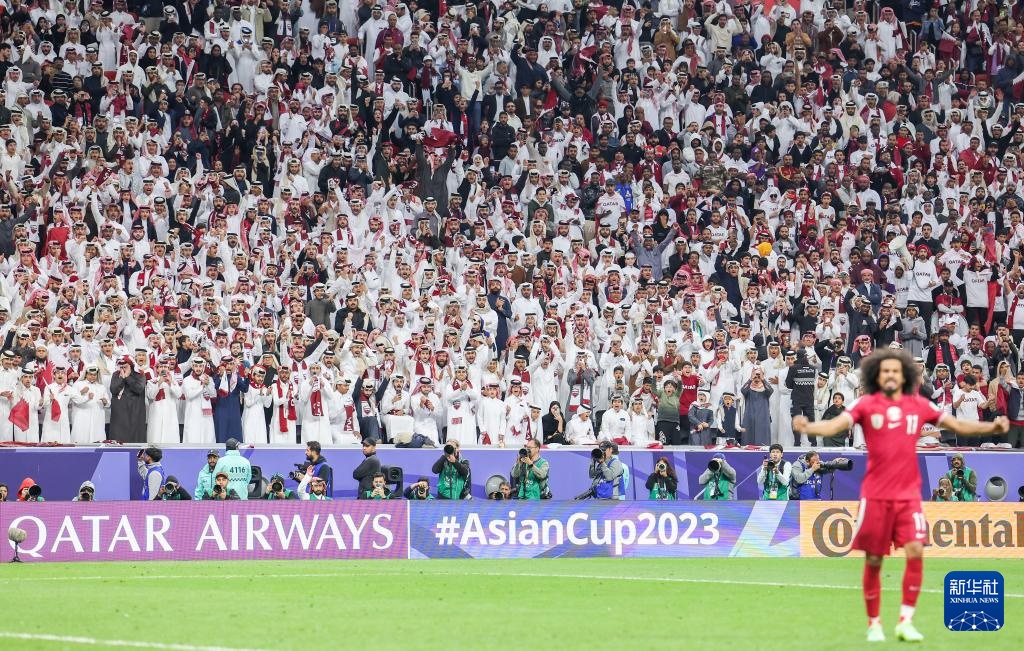 2月3日,卡塔爾隊(duì)球迷在場(chǎng)邊觀戰(zhàn)。新華社記者 丁汀 攝