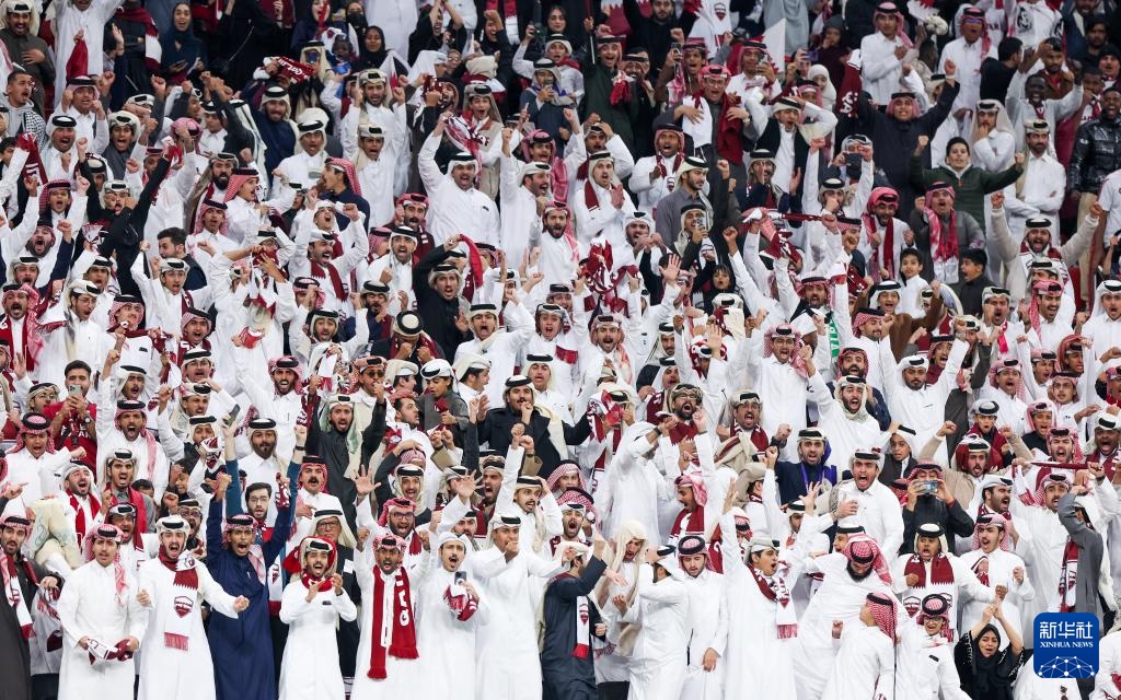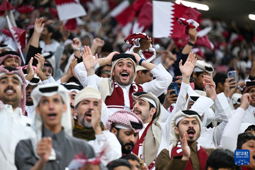 2月3日,卡塔爾隊(duì)球迷在比賽中慶祝。新華社記者 丁汀 攝
