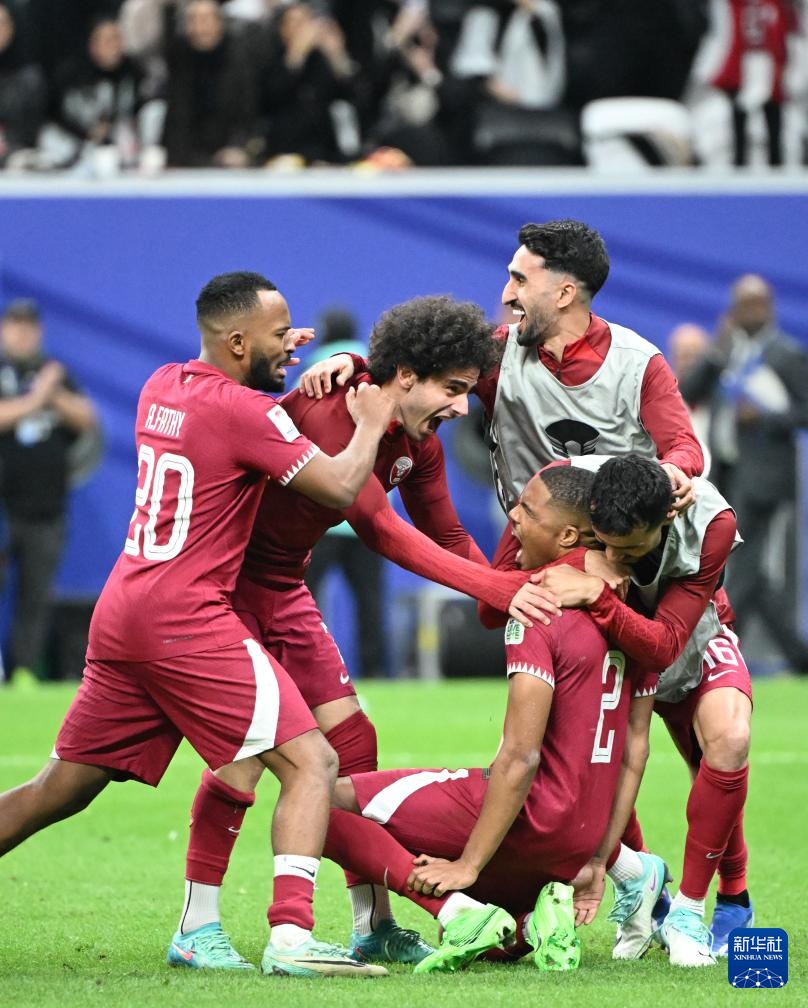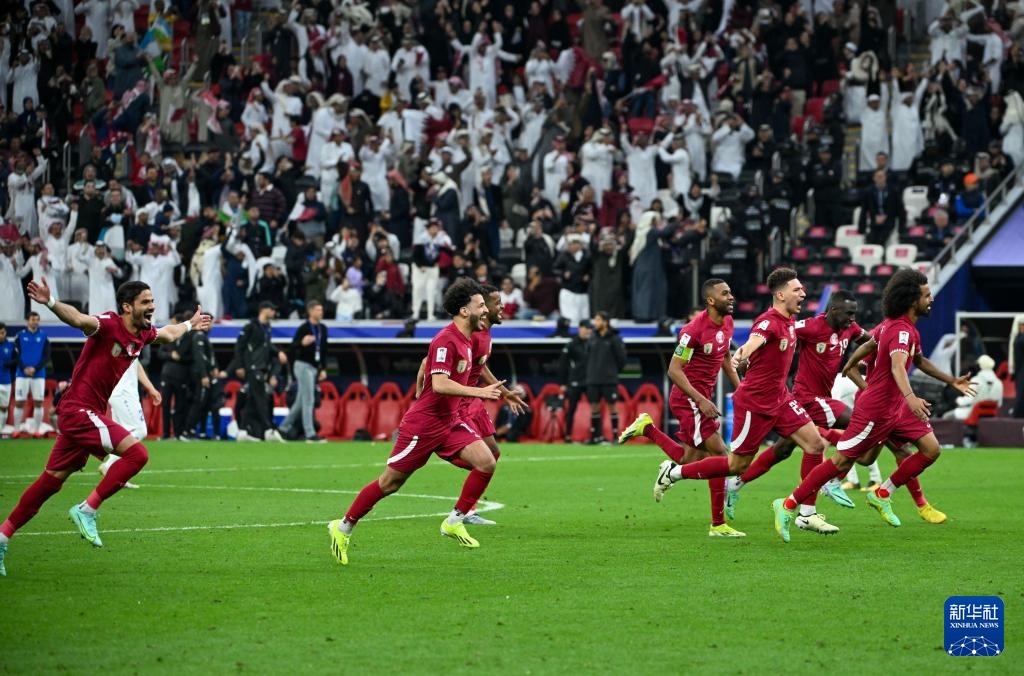 2月3日,卡塔爾隊(duì)在比賽獲勝后慶祝。新華社記者 丁汀 攝