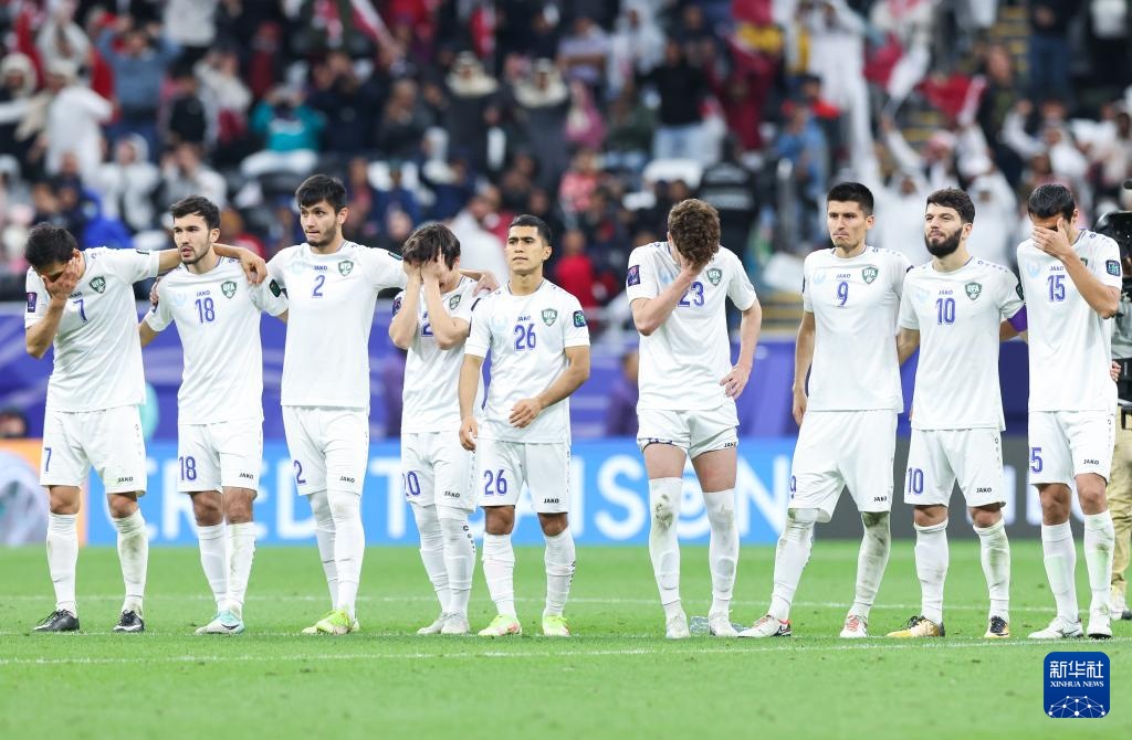 2月3日,烏茲別克斯坦隊(duì)球員在點(diǎn)球大戰(zhàn)中。新華社記者 丁汀 攝
