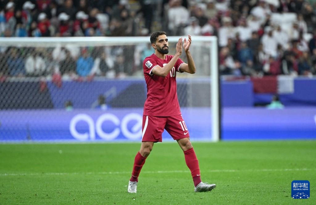 2月3日,卡塔爾隊(duì)球員哈桑·海多斯被替換下場(chǎng)。新華社記者 孫凡越 攝