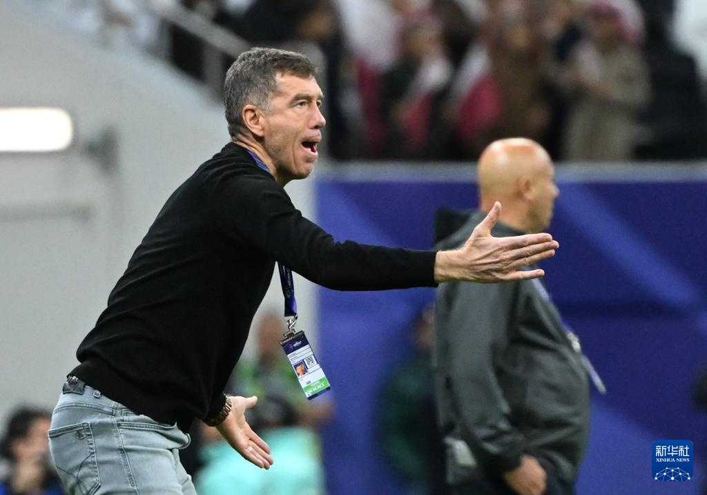 2月3日,烏茲別克斯坦隊(duì)主教練卡坦內(nèi)克(左)在比賽中指揮。新華社記者 孫凡越 攝