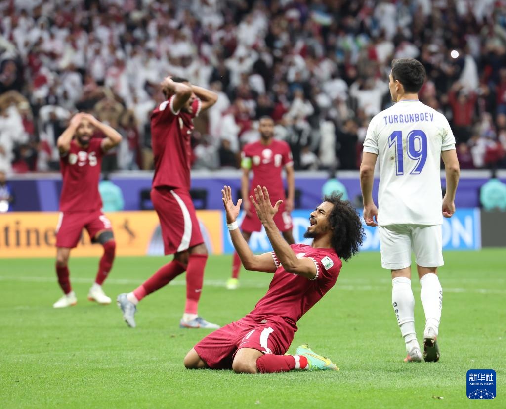 當(dāng)日,在卡塔爾多哈海灣球場(chǎng)舉行的男足亞洲杯四分之一決賽中,卡塔爾隊(duì)與烏茲別克斯坦隊(duì)在常規(guī)時(shí)間與加時(shí)賽中戰(zhàn)成1比1平。通過(guò)點(diǎn)球大戰(zhàn),卡塔爾隊(duì)以4比3的總比分戰(zhàn)勝烏茲別克斯坦隊(duì),晉級(jí)四強(qiáng)。