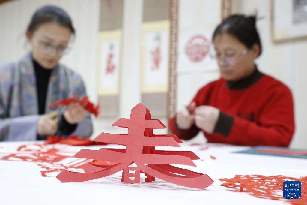 2月4日,剪紙愛好者在河北省邢臺市廣宗縣圖書館剪紙迎立春。