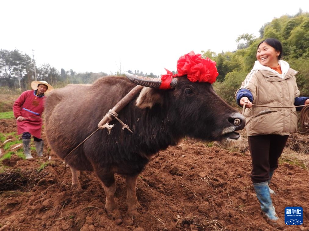 2月4日,四川省達(dá)州市大竹縣竹陽街道農(nóng)民在田間“犁春牛”,祈盼新的一年風(fēng)調(diào)雨順、五谷豐登。