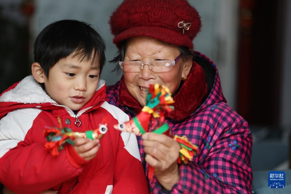 2月4日,山東省臨沂市郯城縣郯城街道龍泉社區(qū)居民為孩子講解“春雞”的寓意。魯南部分地區(qū)有在立春日給孩子佩戴“春雞”的習(xí)俗,寓意茁壯成長、吉祥平安。