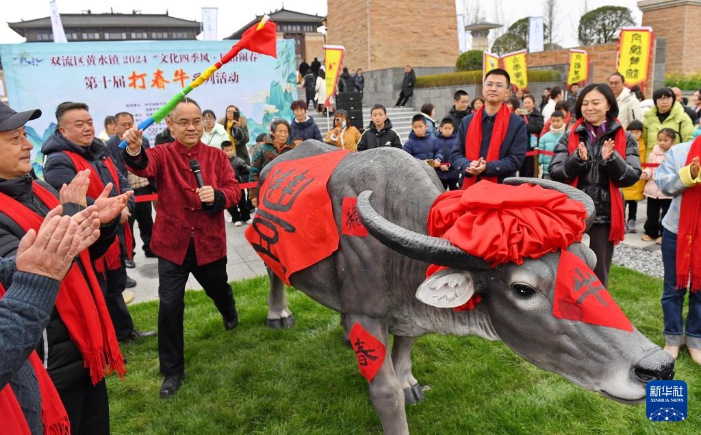 2月4日,四川省成都市雙流區(qū)黃水鎮(zhèn)居民舉行“打春牛”活動,祈求國泰民安。