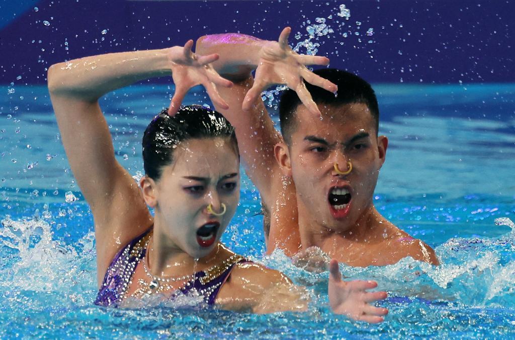 花游集體技巧自選決賽中,預賽第一名的中國隊最后出場,以一套主題為《生命之光》的動作贏得244.1767分,力壓烏克蘭隊和美國隊奪冠。混雙技術自選決賽中,預賽第一名的中國組合石浩玙/程文濤得到全場第二高的223.3166分,為中國隊再添一銀。哈薩克斯坦組合博拉托娃/基姆奪冠,墨西哥組合希門尼斯/卡里約獲得季軍。