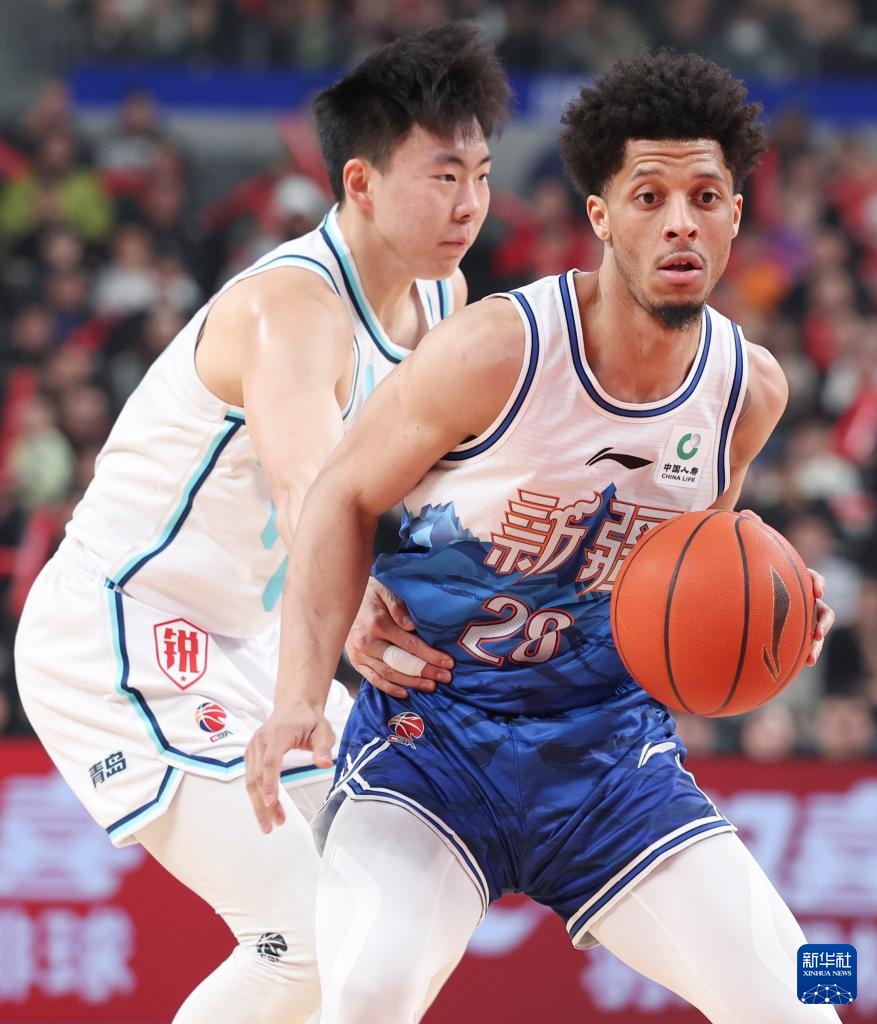 2月5日,新疆伊力特隊球員威金頓(右)在比賽中突破。新華社記者 胡虎虎 攝